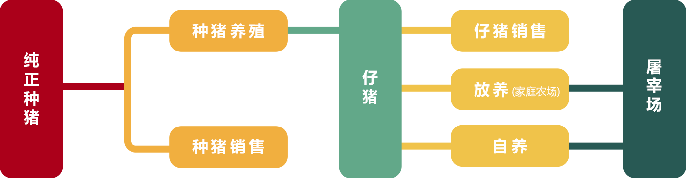 • 現(xiàn)已逐步實(shí)現(xiàn)從祖代育種、父母代擴(kuò)繁、商品代養(yǎng)殖、飼料供給、獸藥動(dòng)保、生物有機(jī)肥,到活體與冷鏈物流、生豬屠宰、肉制品深加工的資源整合與產(chǎn)業(yè)布局。