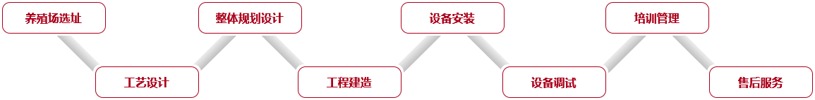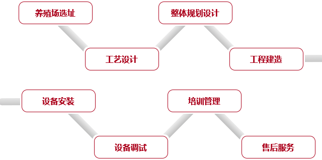 為客戶提供從養(yǎng)殖場選址、規(guī)劃設計、工程施工、設備安裝到后期培訓維護等解決方案,周到細致的為客戶打造出具備國際先進水平及高性價比的現(xiàn)代化養(yǎng)殖場, 打造精品“交鑰匙”工程。根據(jù)不同區(qū)域的自然環(huán)境條件及客戶投資需求,因地制宜地采用適宜的生產(chǎn)工藝及流程布局,是養(yǎng)殖場生物安全、生產(chǎn)高效的根本。